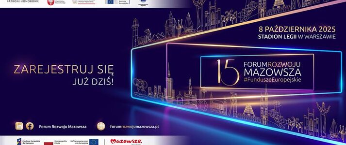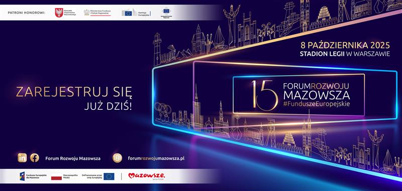 Zapraszamy do udziału w 15. Forum Rozwoju Mazowsza – Forum Funduszy Europejskich! To wydarzenie, w którym Fundusze Europejskie spotykają się z codziennym życiem mieszkańców, a dyskusje ekspertów przekładają się na konkretne rozwiązania dla regionów.