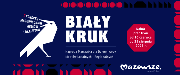 Trwa nabór do II edycji konkursu Nagroda Marszałka Województwa Mazowieckiego dla dziennikarzy mediów lokalnych i regionalnych „Biały Kruk”.