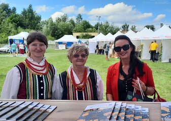 2 sierpnia stoisko Krajowej Sieci Obszarów Wiejskich+ oraz Samorządu Województwa Mazowieckiego prezentowało liczne wydawnictwa i pamiątki, nie zabrakło też konkursów z nagrodami dotyczących Unii Europejskiej, Planu Strategicznego dla Wspólnej Polityki Rolnej na lata 2023-2027 i Krajowej Sieci Obszarów Wiejskich+.