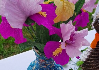Towarzyszyło nam wspaniałe Koło Gospodyń Wiejskich w Rudkach z gminy Przyłęk, które zachwyciło swoim zaangażowaniem przygotowując dla odwiedzających poczęstunek oraz pokaz sztuki ludowej i rękodzieła m.in. kwiaty z bibuły, szydełkowanie oraz wiklina papierowa.