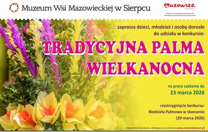 Muzeum Wsi Mazowieckiej w Sierpcu organizuje kolejną edycję konkursu „Tradycyjna palma wielkanocna”.